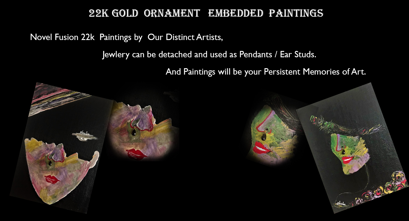 Our Distinct Artist(s) can make Custom Paintings with the 22k Gold Ornaments. which can be detachable and used as Pendants / Ear Studs / more by your loved ones. And Paintings will be your Persistant Memories of Art.